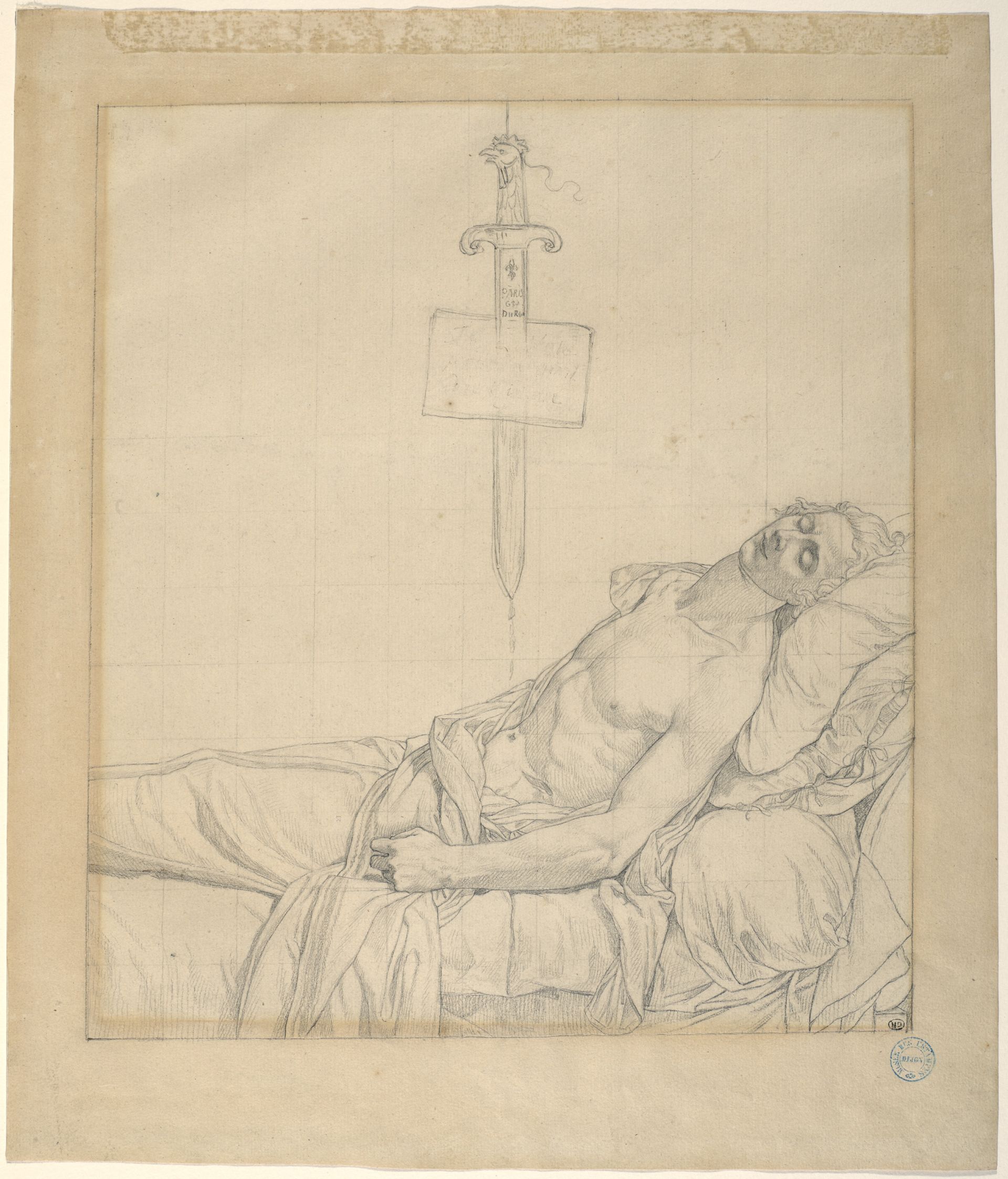 Le fond, nu, est traité dans cette manière vibrante, propre à David. La dédicace, accompagnée de la signature, traduit l’amitié qui liait les deux hommes.