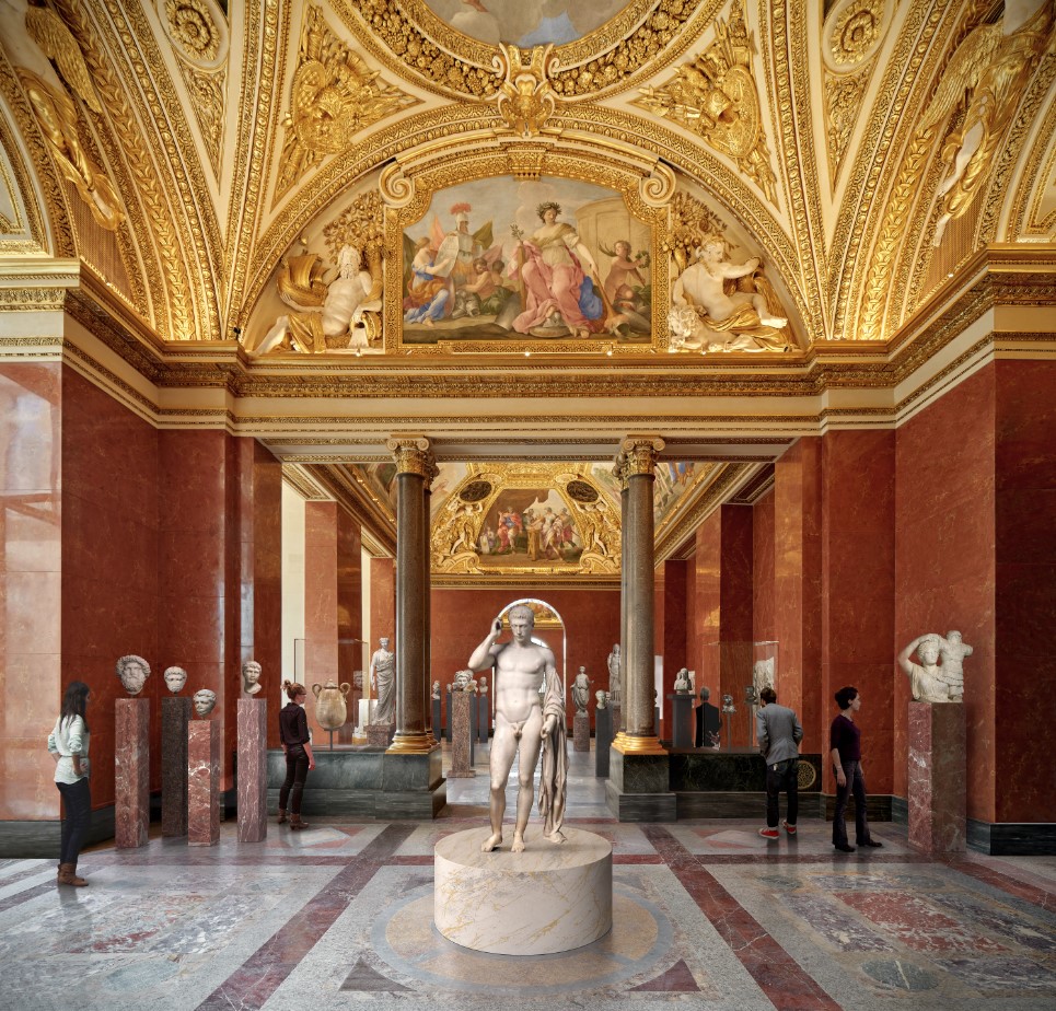 Leur réaménagement proposera une lecture actualisée et pleinement contemporaine de l’art romain antique. Sur près de 3 000 m², sa scénographie, conçue par le prestigieux consortium franco-américain WHY-BGC, offrira un parcours de visite fluide et lisible, à même de captiver un large public. Ouvert sur les autres départements, le parcours romain tissera des liens avec les œuvres des autres grandes civilisations méditerranéennes, dessinant les contours d’une histoire de l’art connectée et hybride, à la portée universelle.